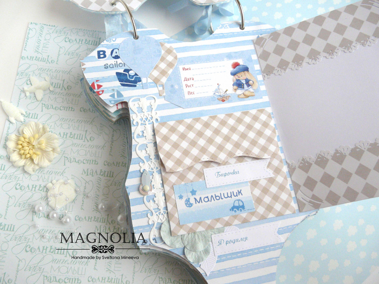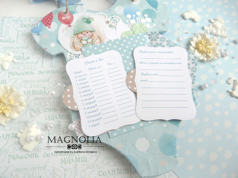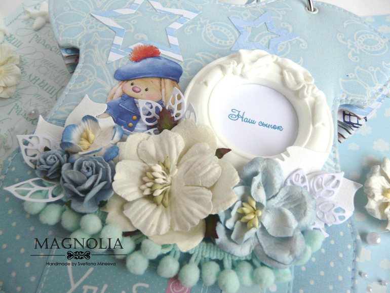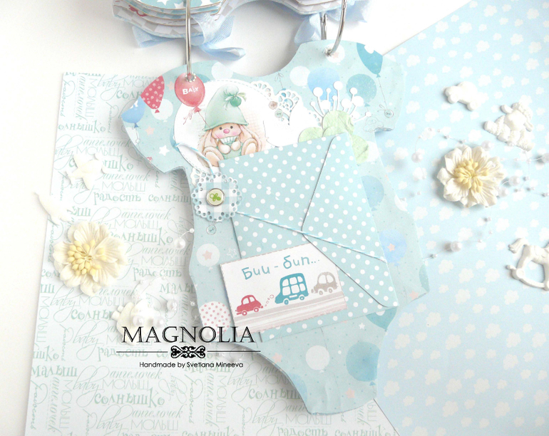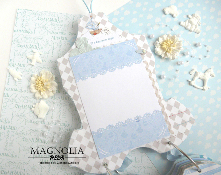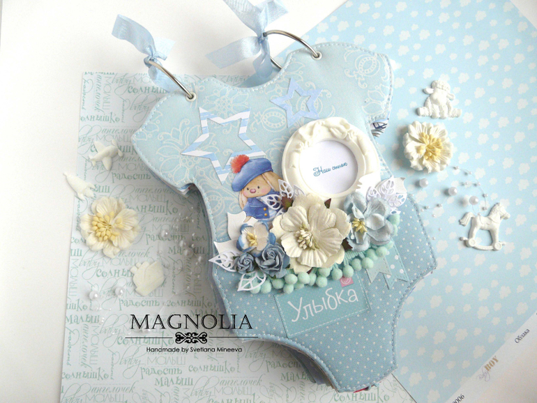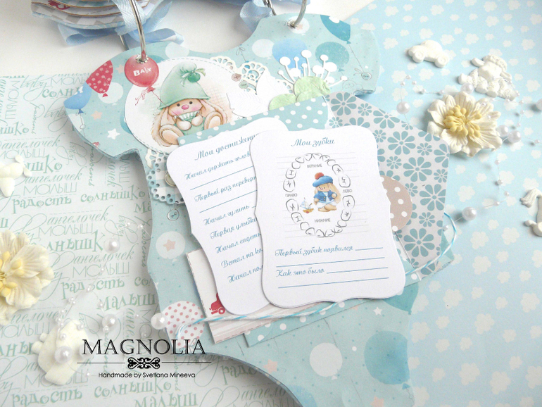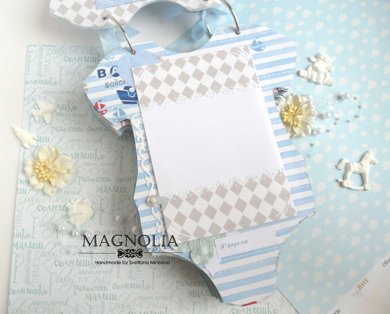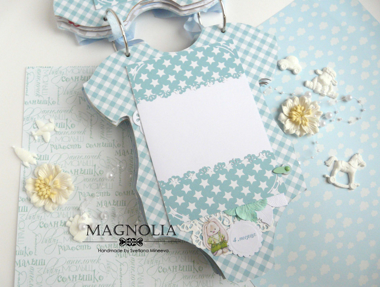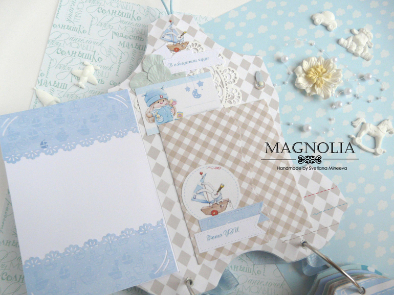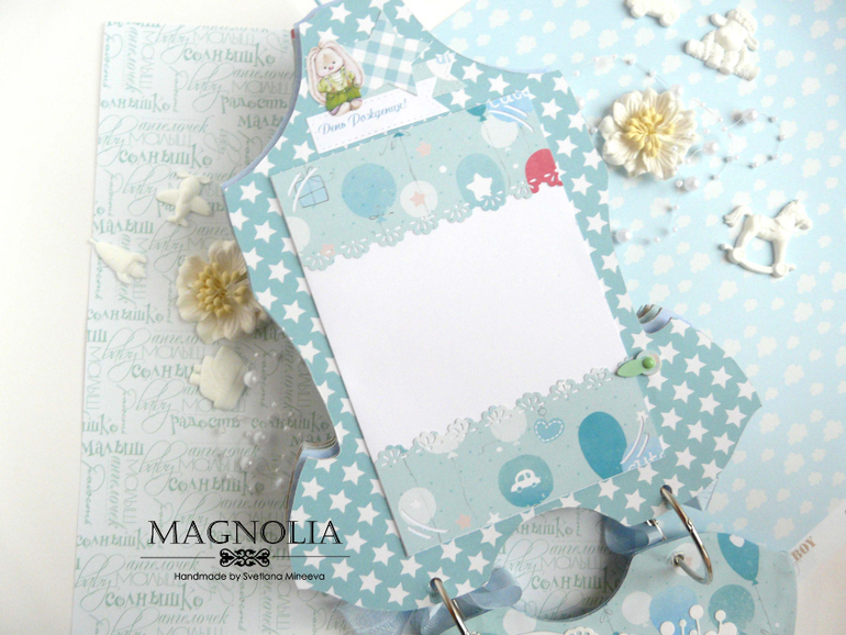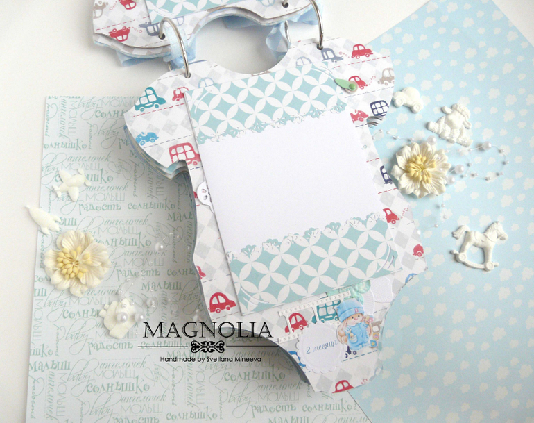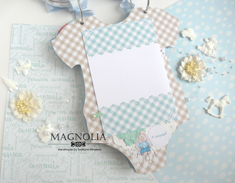 СкрапбукингИ альбом близнец так же в форме боди с зайкой Ми, но уже для мальчика