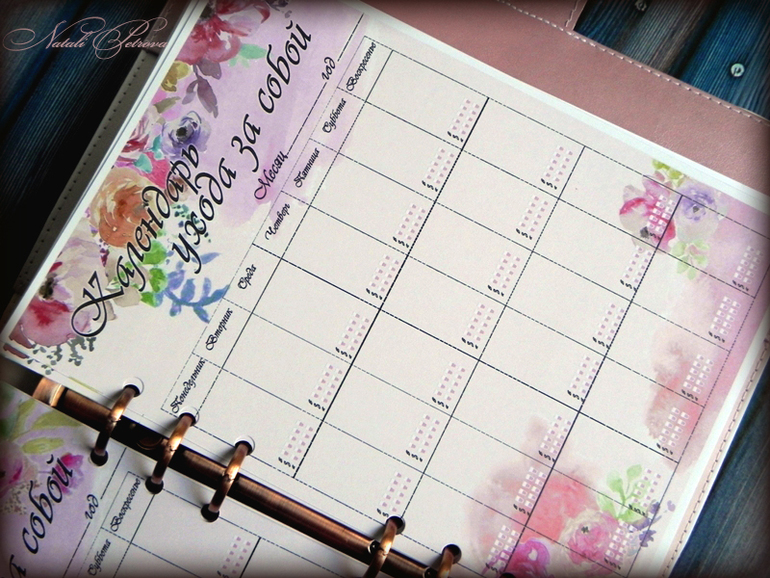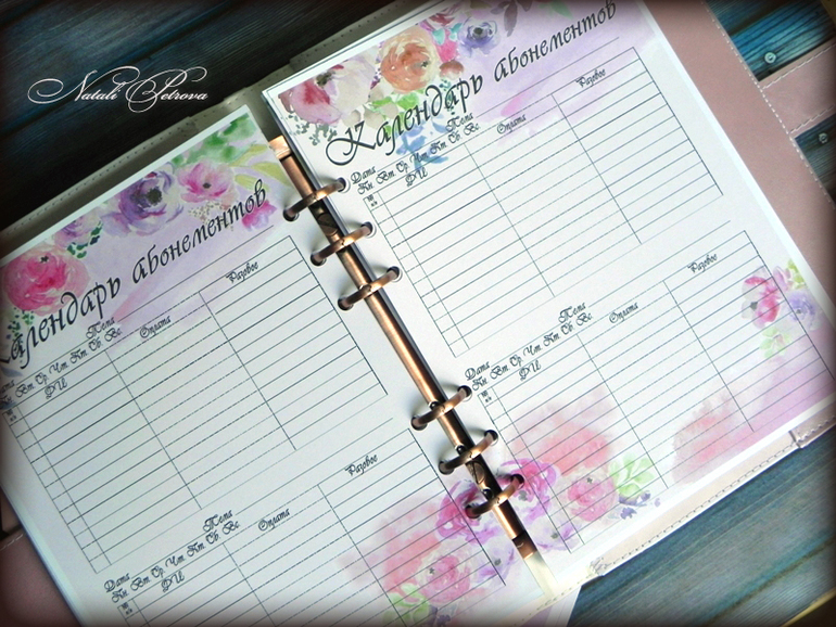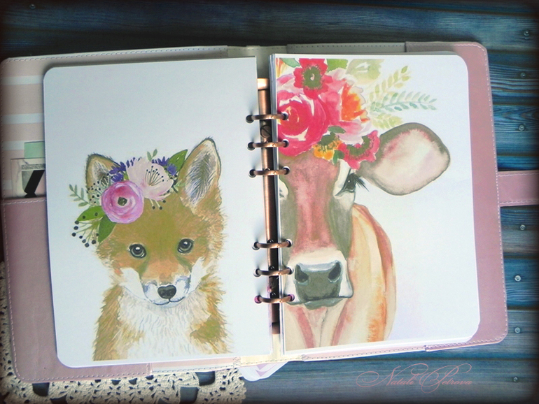 Задумывался он нежно-акварельным с забавными зверятами на разделителях. Планы-сетки разрабатывались индивидуально, впрочем как и весь дизайн страниц.