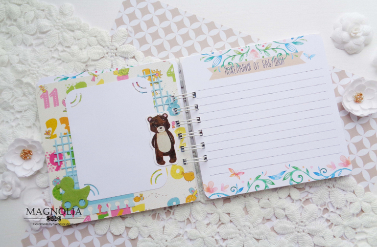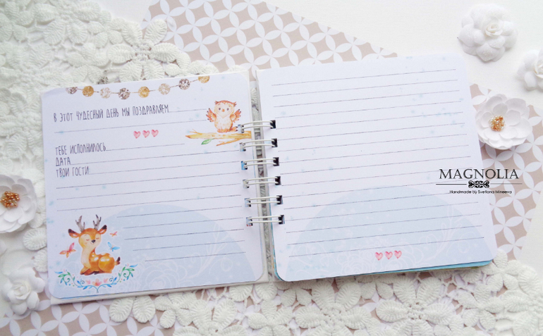 В этой книге пожеланий есть места для фото, а странички с линовкой для пожеланий распечатаны на принтере