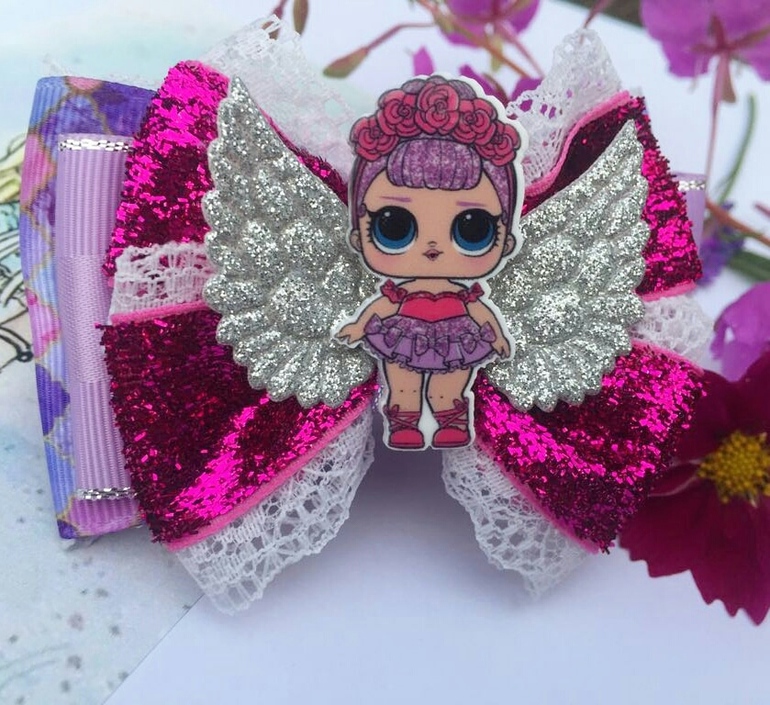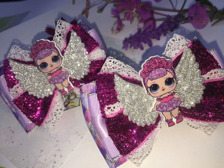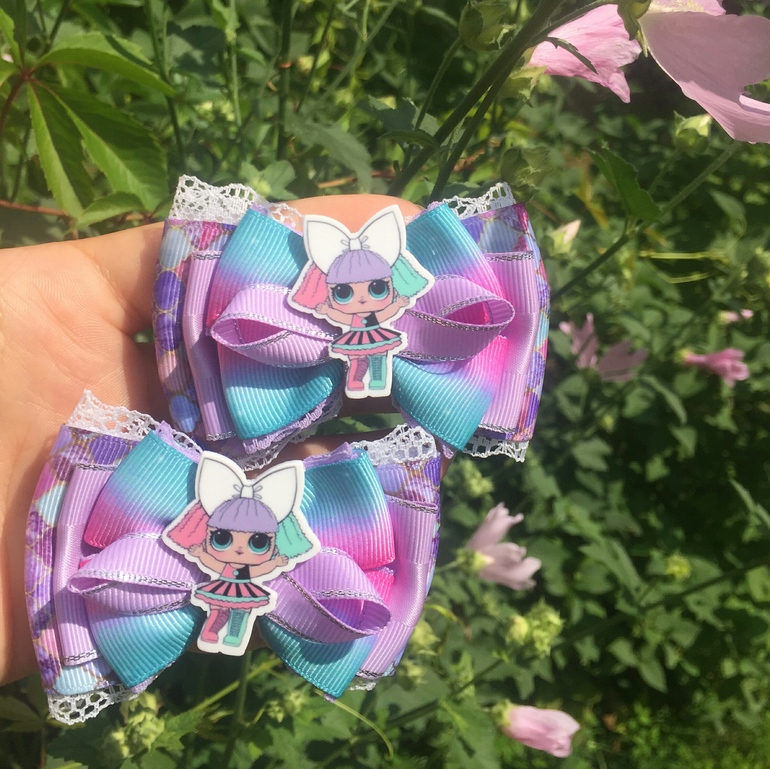 Это еще парочка бантиков с куколками LOL. Размер 8 см.
