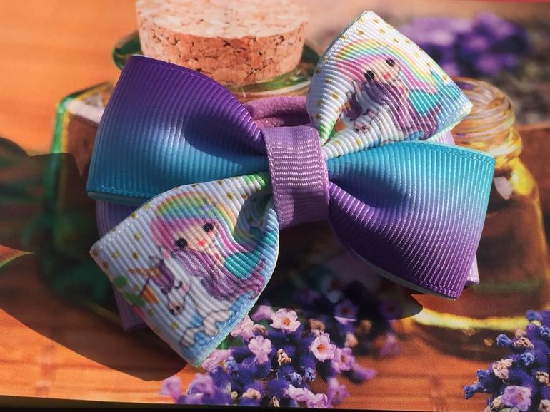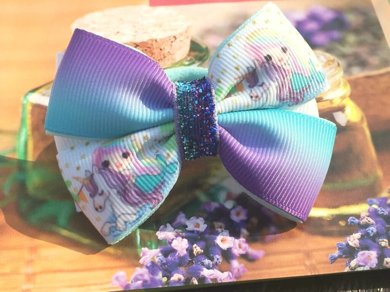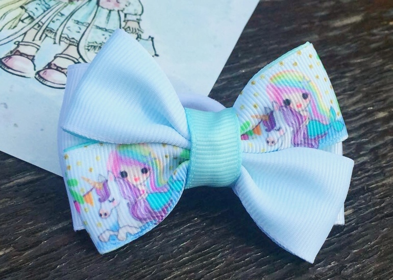 Это очаровательные бантики с русалочкой и единорожкой. Размер 7 см.