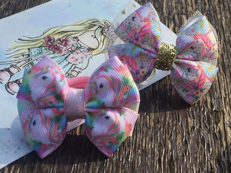 Это маленькие и простые бантики опять же с единорожками. Размер 5,5 и 6,5 см.