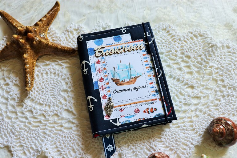 Морской блокнотик А6, внутри 200 не разлинованных страниц голубого цвета