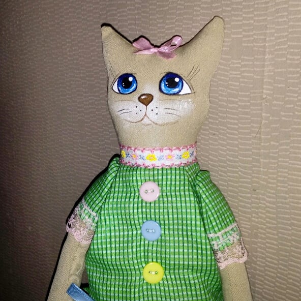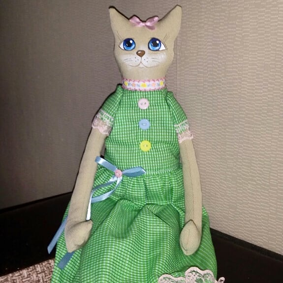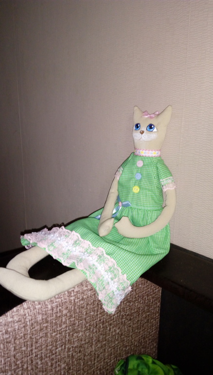 Ростом 47см, высокая дама)))мордочка нарисована акриловой краской.платье из хлопка)