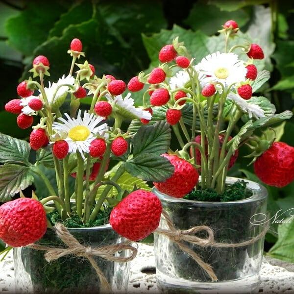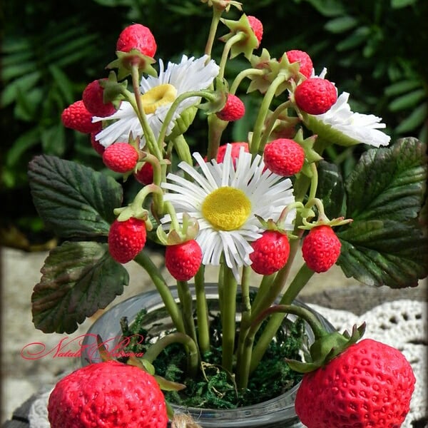 Лепка из пластики (полимерная глина) (ТОЛЬКО ГОТОВЫЕ РАБОТЫ)Воплотила давнюю задумку в жизнь) Мини-композиция из цветов и ягод ручной работы. В составе кустики земляники, ягоды клубники и цветы нечто среднее между маргаритками и ромашками)