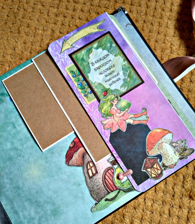 СкрапбукингВот и готов сказочный альбом "Таинственный лес" (подарок от молодого человека для своей любимой девушки) На его страницах живут феи, эльфы и диковинные звери, растут волшебные цветы и грибы, повсюду витает магия и волшебство. Формат альбома 21*24 см, вмещает более 60 фото 10*15 см, есть потайные развороты, кармашки и места для записей. Внимание! Под катом много фото.