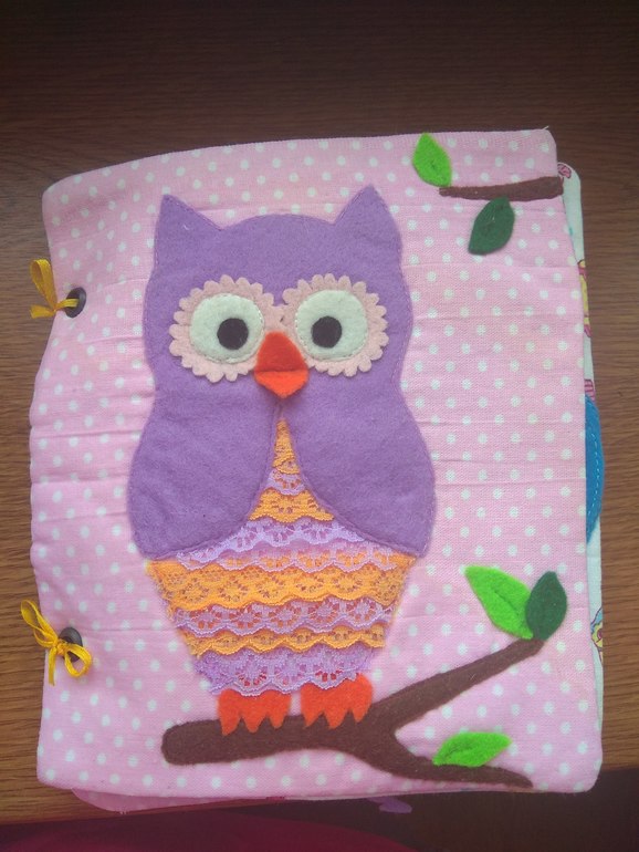 Времени ушло много, но результат и опыт того стоил. Книжечка изготовлена из фетра и хлопка, дополнена бусинами, молнией, липучками и кнопками. Поддается деликатной ручной стирке