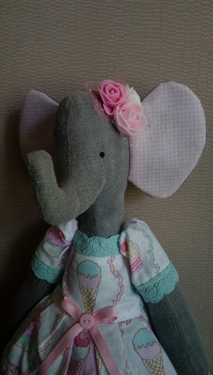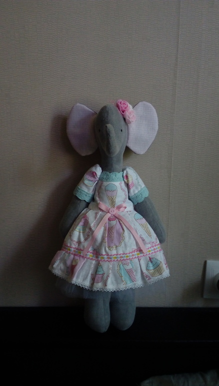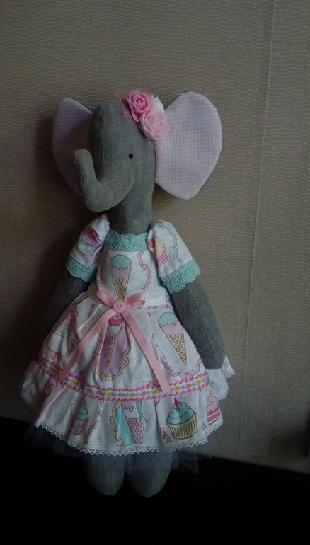Игрушечный мир - животныеДевочка слоник,в платье в "вкусным" рисунком.🍰🍨🍦