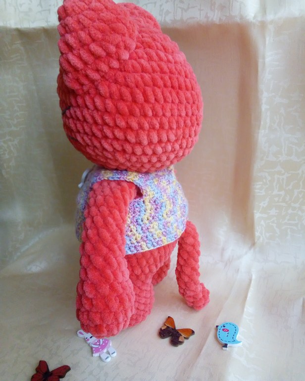 Родился котик, муж сказал, что он похож на физика-ядерщика из 90х😀, очень милый плюшевый малыш, ждет своего хозяина или хозяйку. Высота 26см. Пуговка на кофточке не оторвется, пришита безопасно.