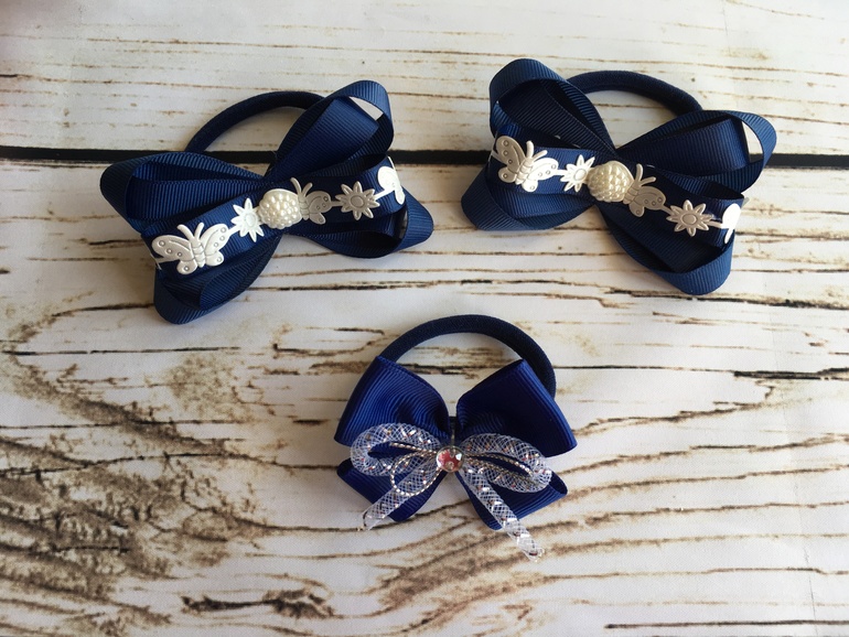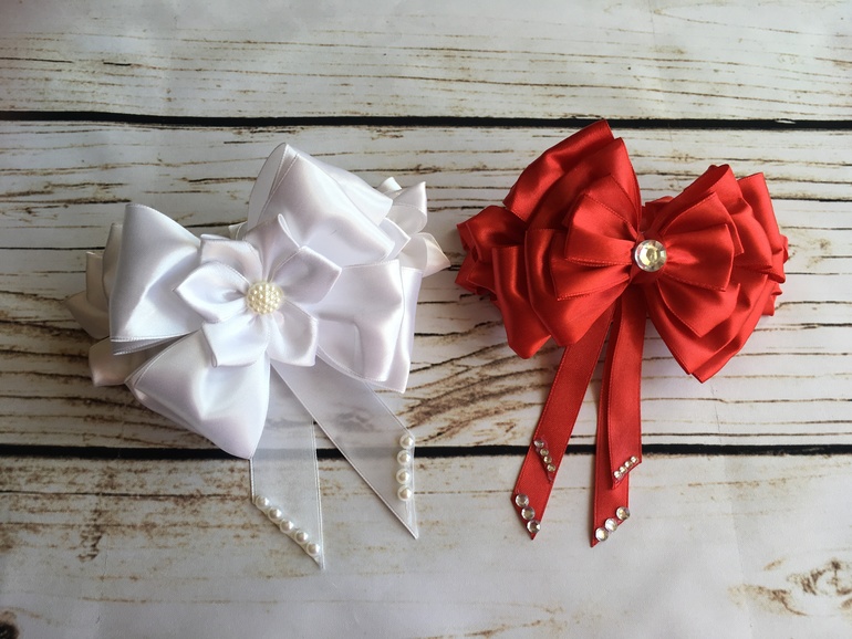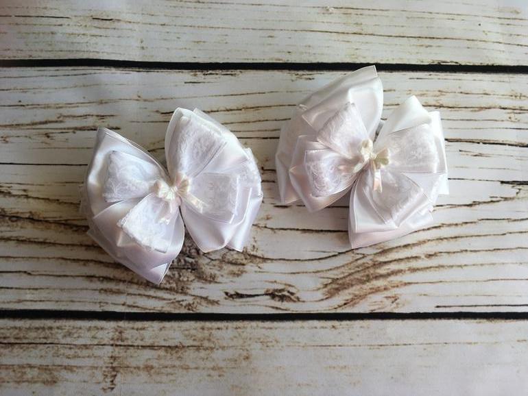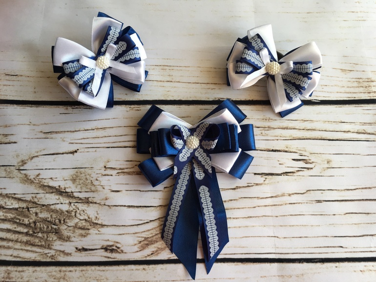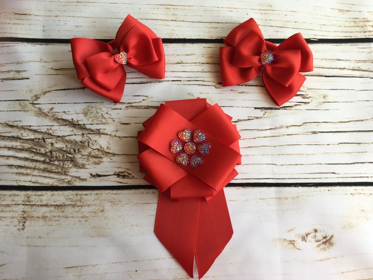 Цветы из ткани и форма. Канзаши. Украшения для волос.Девчонкам для школы сделала бантики и галстучки разные: