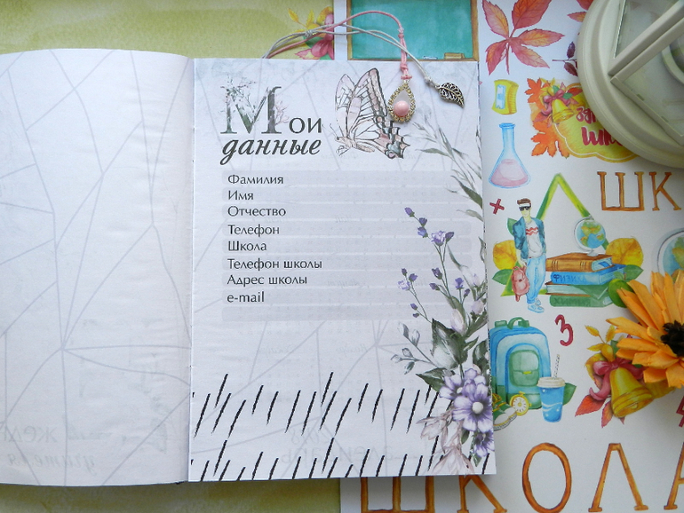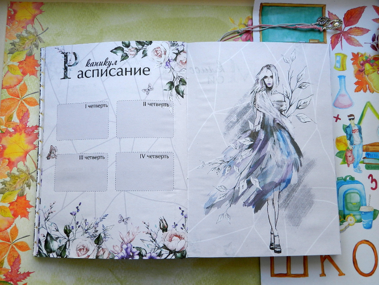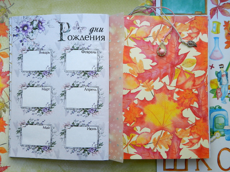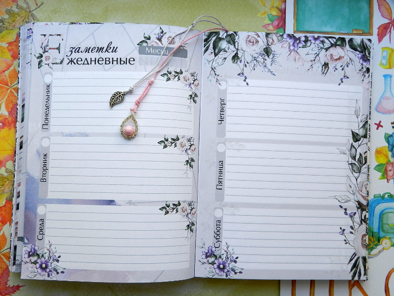 СкрапбукингДоброго дня! До осени осталось 2 недели, я пока не хочу в это верить, мне как обычно...мало лета, я впитываю солнце каждой клеточкой..Скоро, с гладиолусами наперевес. детишки пойдут в школу. Покажу новенький ежедневник для Учителя. Обложка из очень нежного на ощупь кожзама, 2 закладки с подвесочками, на форзаце карман для бумажечек и открытки-закладки и много, очень много красивых и функциональных страничек. Смотрите, фото много)