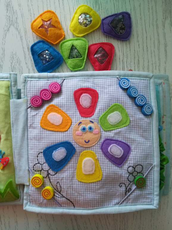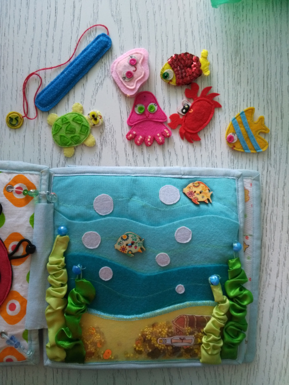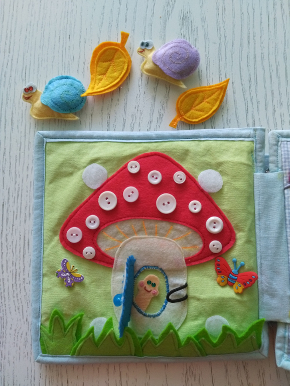 Спасибо! В этой книжке все прошито на машинке или в ручную. Сами странички из ткани, а детали все из фетра. Фетр я покупала набором на сайте Алиэкспресс. Все остальное нашла дома: бусинки, бисер, пуговицы и т.д. А идеи брала из интернета, выбирала что мне нравится и сама уже делала эскизы. А так в интернете (особенно на ютубе) очень много шаблонов.
