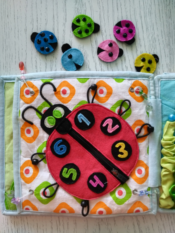 Развивающие игрушкиПервый раз шила развивающую книжку в подарок на день рождения среднему сыну Артему. Так как шила первый раз и в основном ночью, то книжка получилась немного кривой 🙂 Но моим сыновьям понравилось.