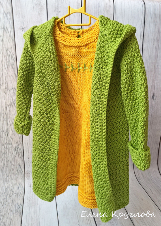Вязание спицамиКомплект состоит из платья и пальто. Все выполнено из 100% хлопка. Пряжа Нако Калико. Под кат много фото