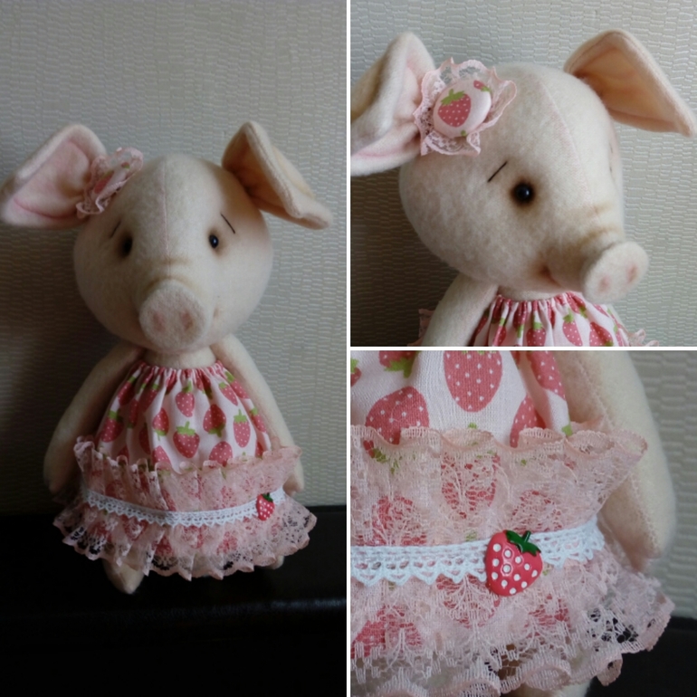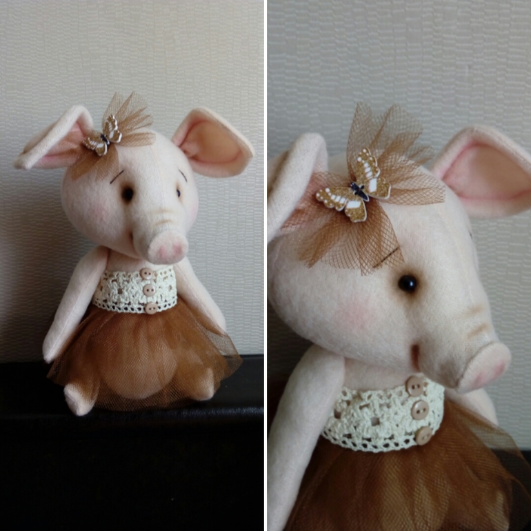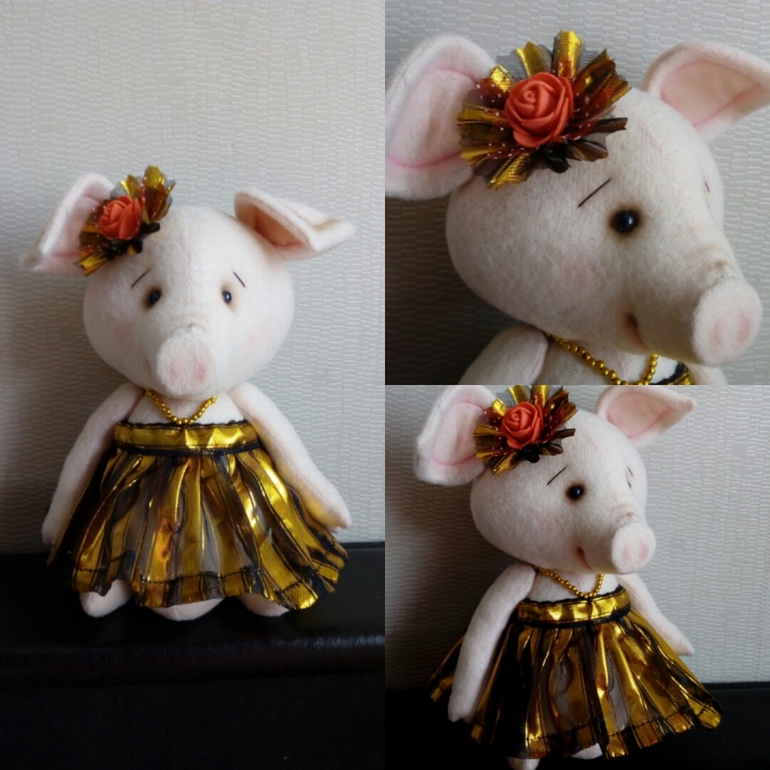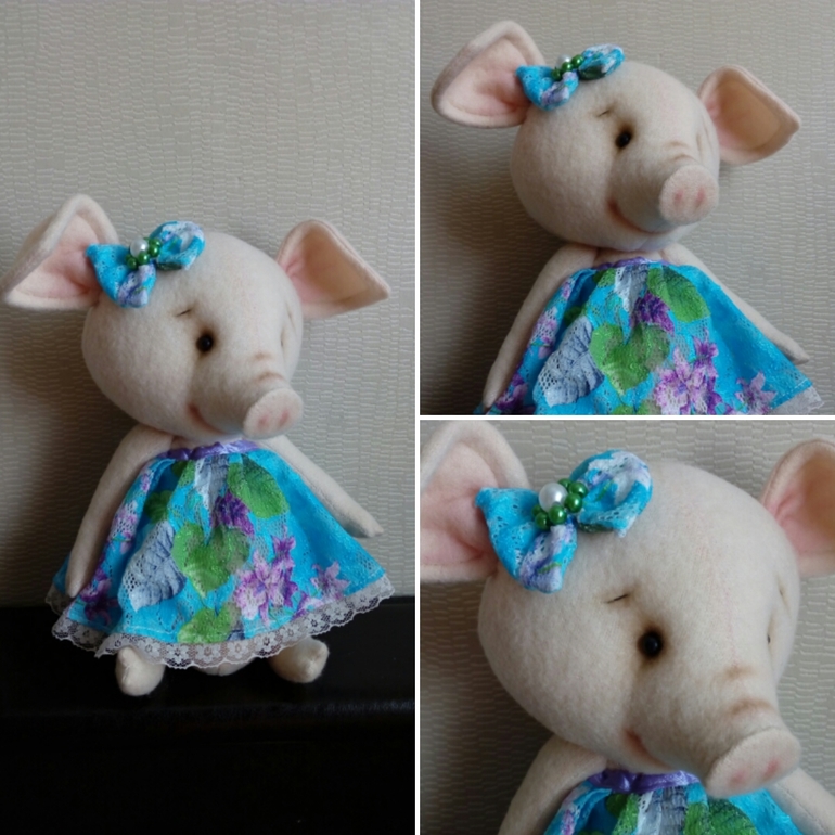 Пришлось полностью переделать выкройку какого -то медведя,чтоб вышла свинка. Но я довольна результатом))