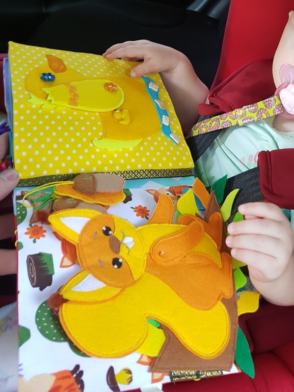 Малышка с помощью этой книжки изучит цвета, части лица/тела, понятия мягко/жёстко, верх/низ, право/лево, за/под/на, короче/длиннее. Поиграет в ку-ку, накормит, крылышками помашет, лапками подвигает, пузиком попищит - вообщем и игра, и развитие. Брать такую книжку можно куда угодно и в поликлинику, и в дорогу, и просто дома можно позаниматься!
