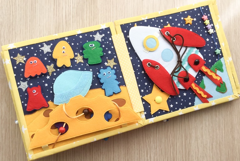 На страничке с подводной лодкой - изучение направлений движения, вверх и вниз, винт можно покрутить( на пришивной кнопке).