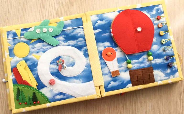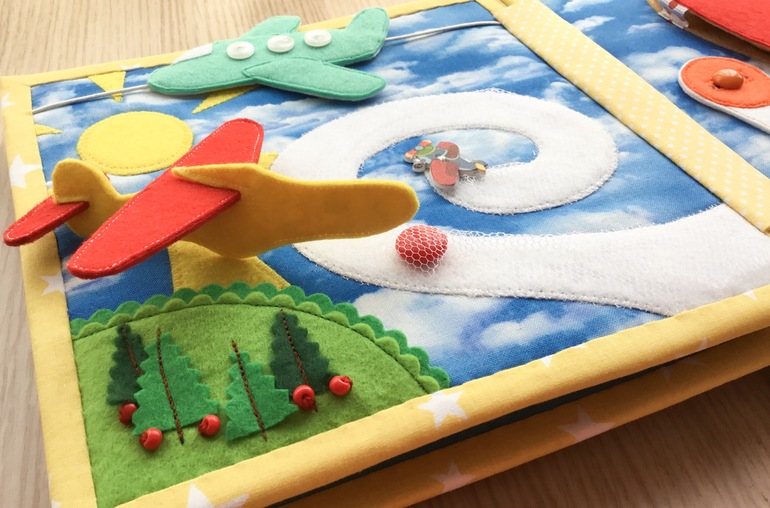 Следующий разворот с самолётом , передвигаем по шнуру. Под сеткой двигаем пуговицу.