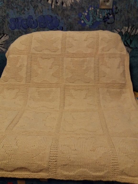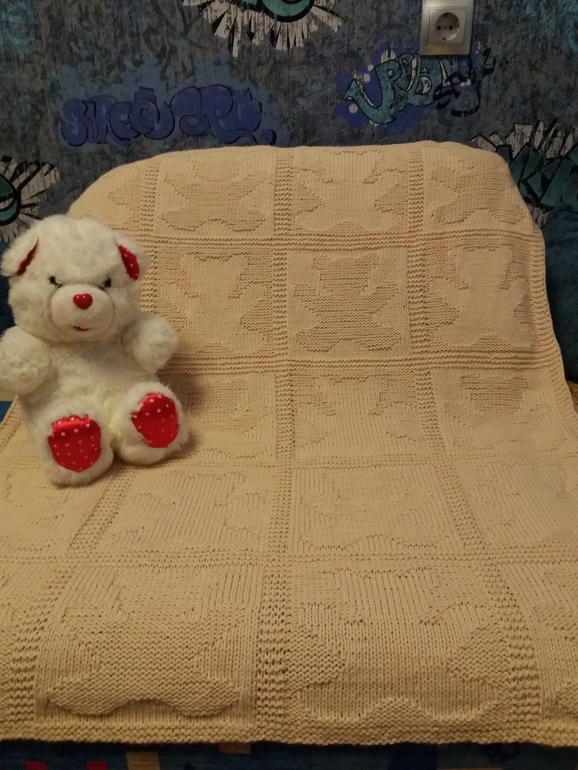 Вязание спицамиСвязался в подарок плед для мальчика Мишутки) Пряжа Семёновская Ольга ПШ, расход 4 мотка.