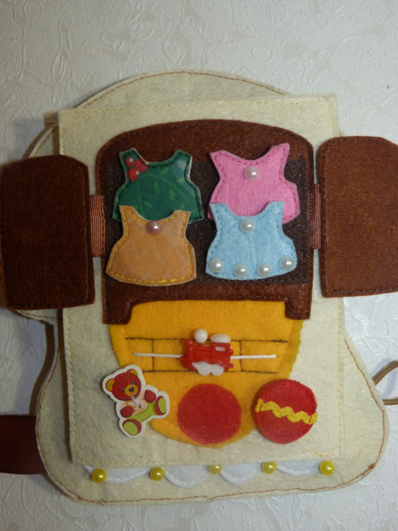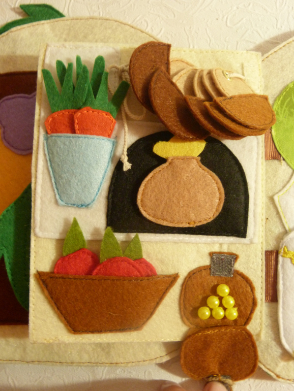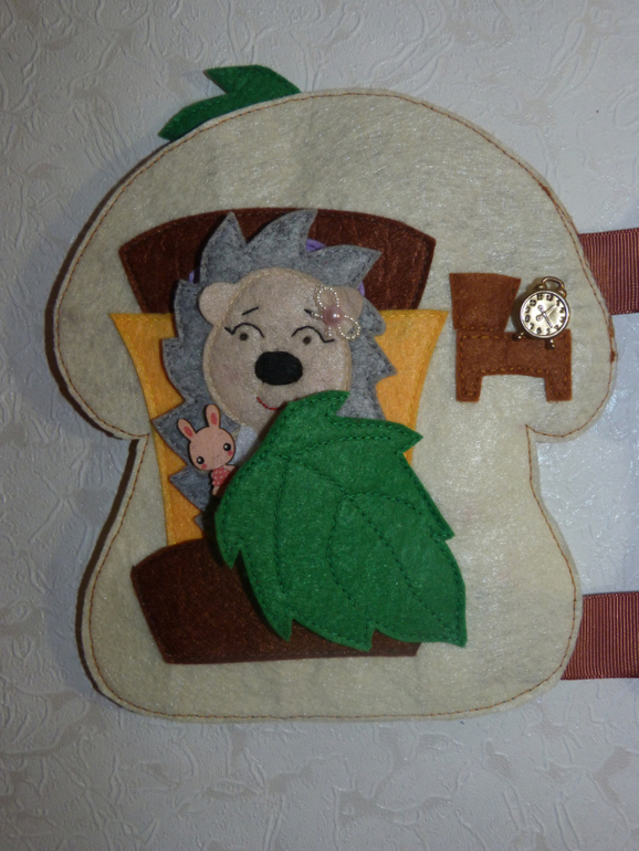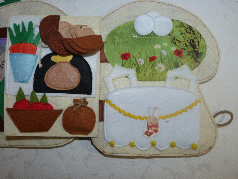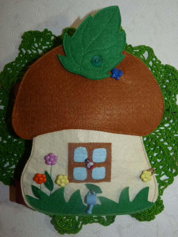 ФетрЗдравствуйте ! Хочу показать очередную игровую мини - книжечку для девочек "грибочек с ёжиком". Размер 18 см./ 13 см. Несмотря на небольшой размер, в домике есть всё, что нужно для жизни в волшебном лесу : спальня и гардероб со сменными платьями, игровая, кухня-столовая с печкой, столом, посудой и запасом еды. Так же есть сад с цветами , таз для стирки и верёвка для сушки нарядов.Упакован домик в сумочку. Под катом много фото, более 5.
