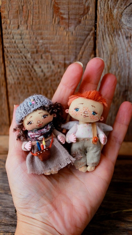 Кукольный мир - человекоподобные куклыДобрый день! У меня две брошечки. Сшиты вручную из натуральных материалов, набиты гипоаллергенным синтепухом..Ручки подвижные из полимерной глины. Оснащены брошечки металлической застежкой, достаточно прочной, чтобы зафиксировать шарф или палантин.Ростик 6 см.