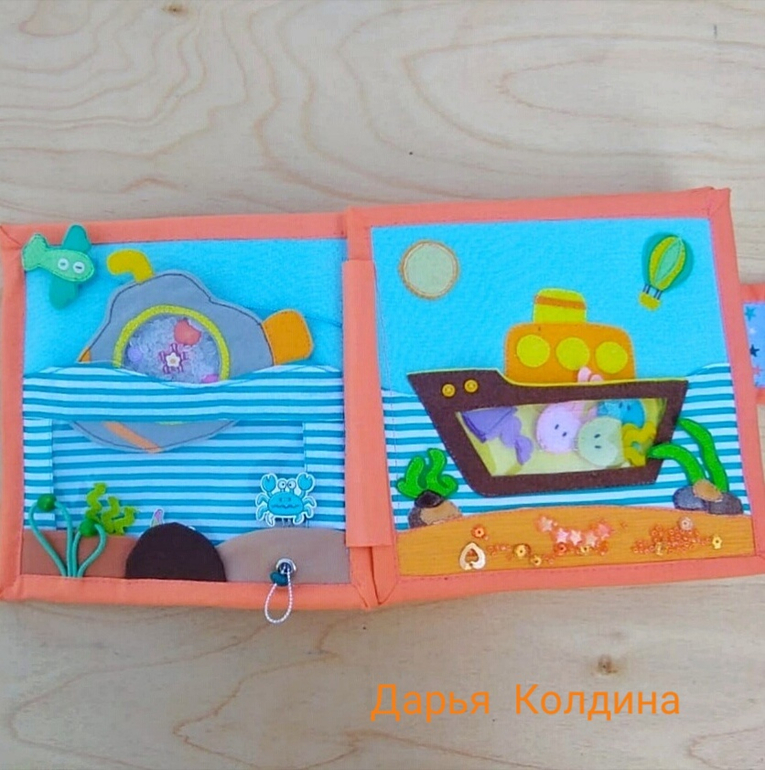 Разворот "МОРЕ" - в кармане подводная лодка-искалка. Для ловили осьминогов - есть удочка.