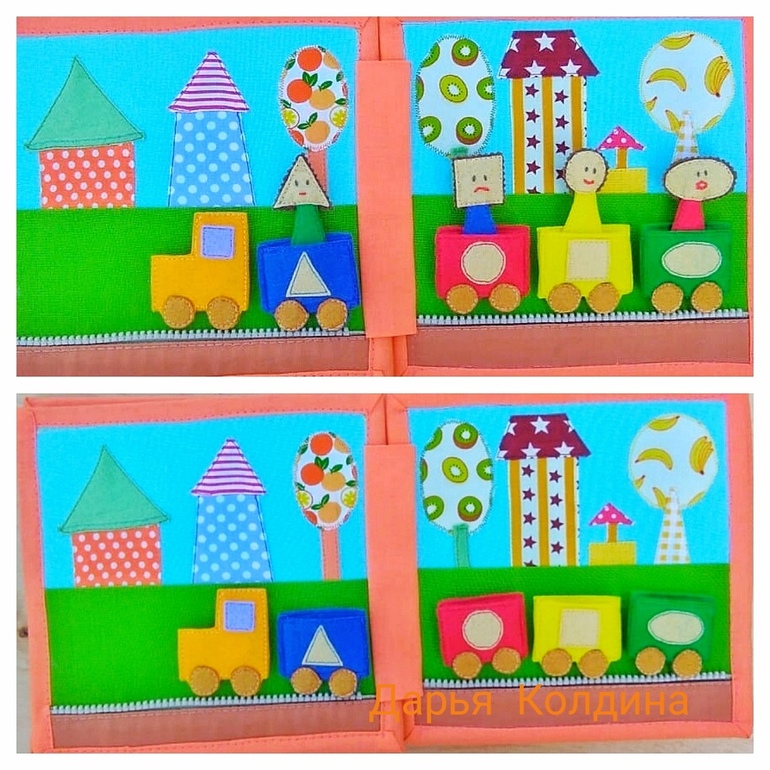 Разворот "ПОЕЗД" - паровоз и вагончики на магнитных кнопках. Пассажиры могут рассаживаться в зависимости от цвета или геометрической фигуры.