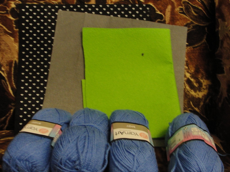 В посылке кроме пряжи оказался сюрприз в виде 3 листов фетра! На фото не вся пряжа, шаловливые ручки сразу увели клубочек))