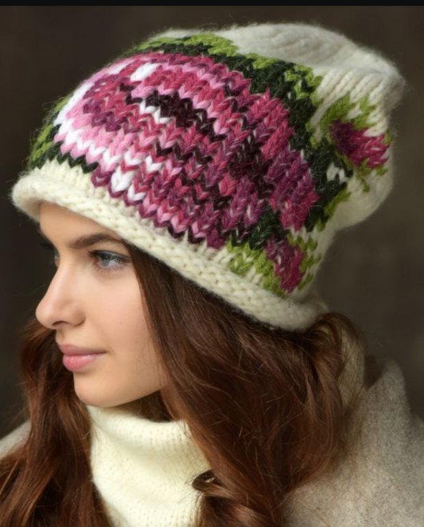 Вопрос/ответ, поиск схем, выкроек, советов, магазинов и т.дДобрый вечер. Опытные рукодельницы, кто давно вяжет, подскажите как выполнена эта шапка, основа шапка-бини? А рисунок это связано или вышито поверх основного вязания?