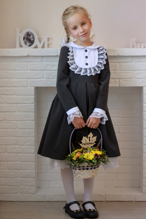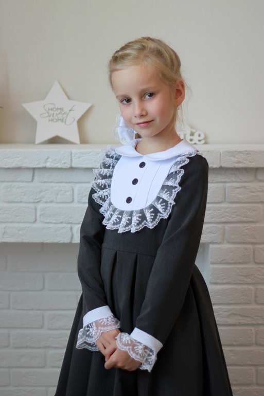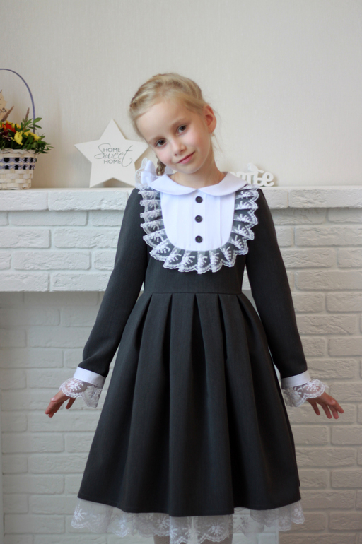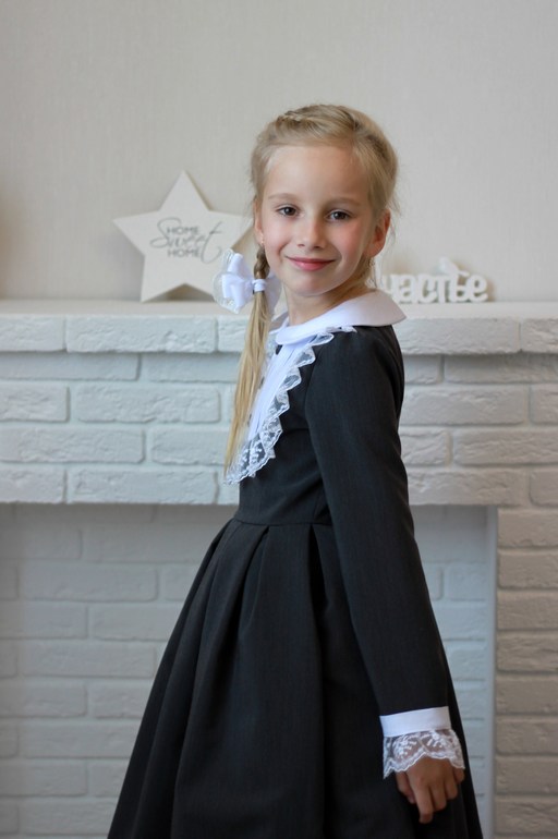 Набрали в яндексе "школьное платье", Полинка остановила свой выбор на подобной модели. Воротничок и манжеты появились в последний момент, изначально задумывалось без них.