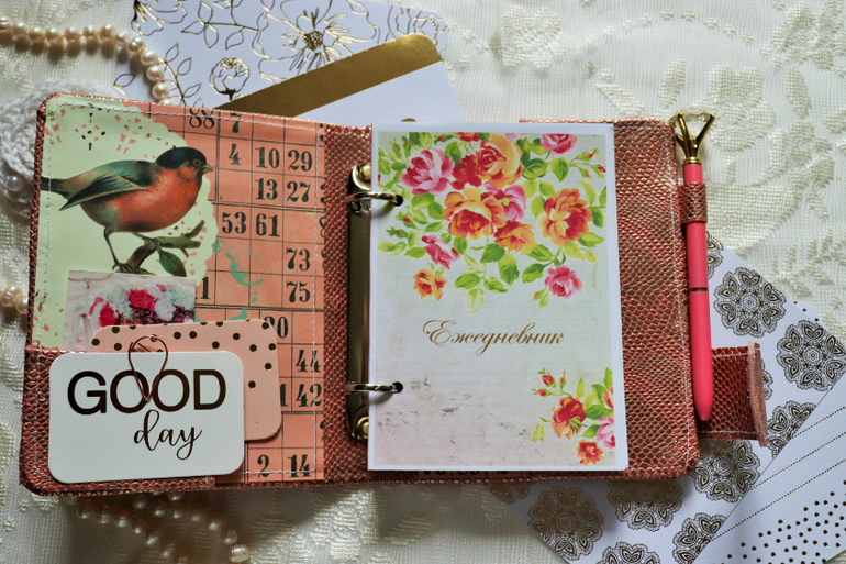 СкрапбукингДанные планеры формата А6, обложки из кожзама, внутри кольцевой механизм