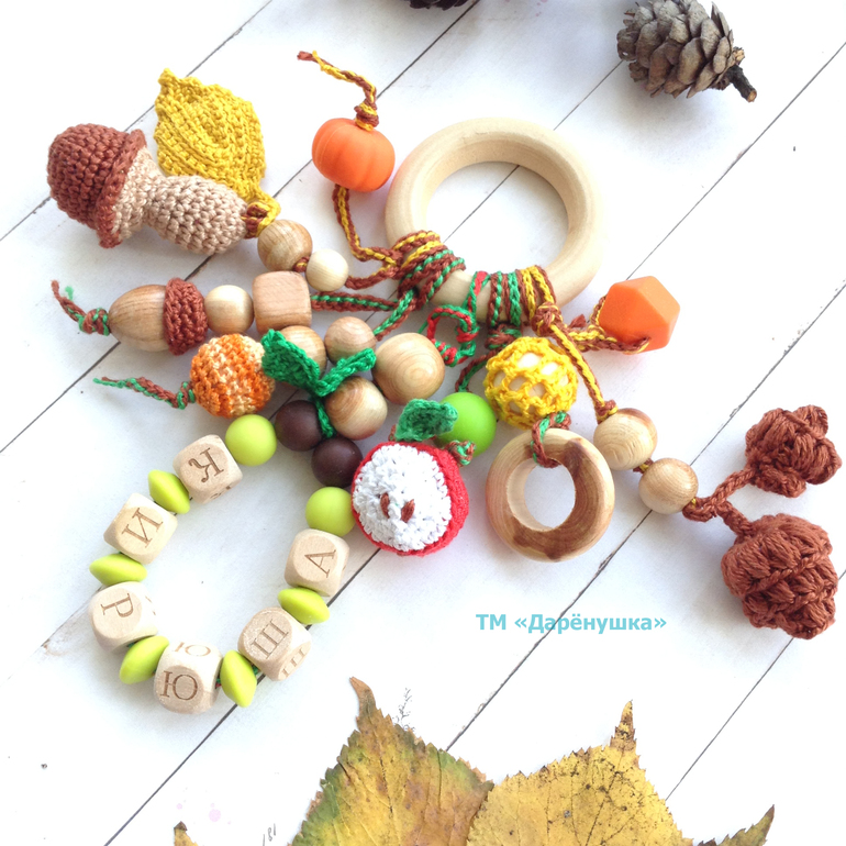 Малышу точно понравится грызть и перебирать бусины. Процесс прорезывания зубок станет легче, а у мамы появится немного свободного времени.