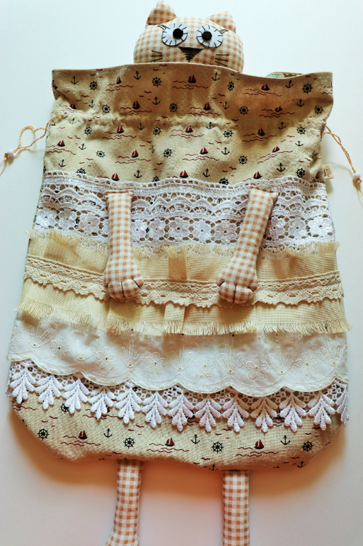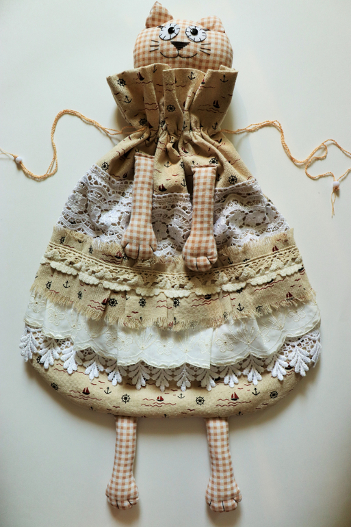 Еще сотворились такие вот винтажные морские кошки с двойным мешочком, вся в кружевах и шитье (за морскую ткань спасибо NESTERIA (Анастасия) ) - они немного отличаются друг от друга