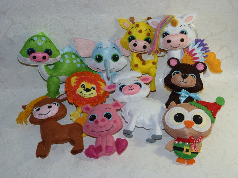 ФетрЗдравствуйте , девочки ! А вся в зверюшках.... не могу остановиться, как же они мне все нравятся. Игрушки предназначены для ёлки либо просто,как украшение интерьера детской, сшиты по выкройкам Марьи Ману. Высота 10 - 12 см. Под катом 4 фото.