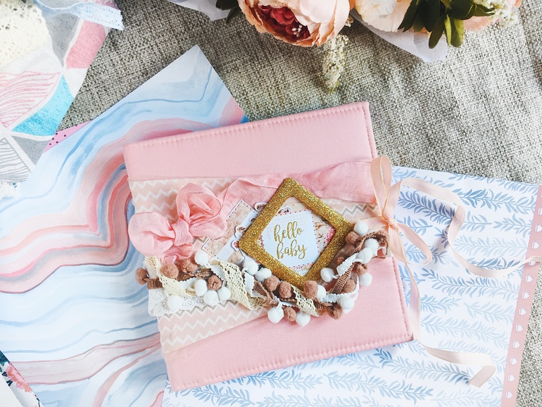 Вот такой альбом для девочки недавно сотворила. Для записей от ожидания и до годика🌟Обложка мягкая тканевая😻декор ткань и фатин, объемный декор на обложке🌟закрывается на ленты. Альбом в книжном переплёте,красивые форзацы с золотыми кармашками🌟 внутри 76 страниц,вмещает больше 80 фото👌