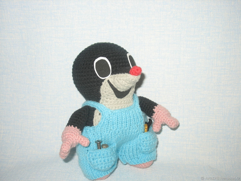 Кротик в штанишках. Пряжа хлопок-акрил. 1200