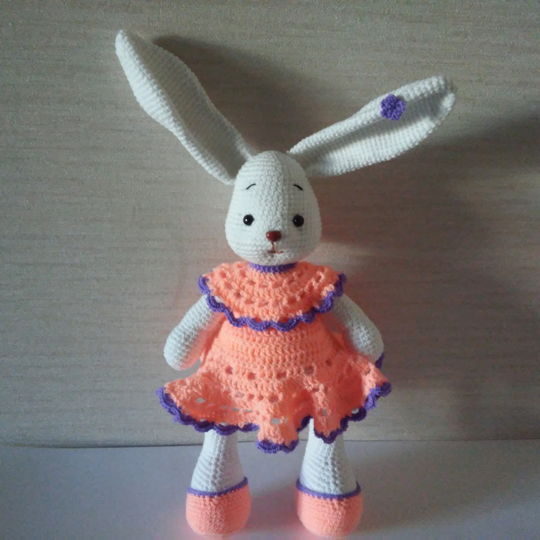 Зайка связана крючком, в основе лежит МК Анастасии Решетниковой. Платье и туфельки съемные. Можно связать дополнительные детали одежды; или братика:).