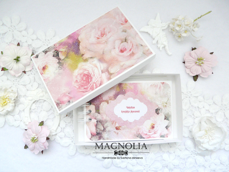 Внутри 12 листов цветной печати с линовкой для записи пожеланий. Оформленная красивая обложка. Красивая упаковка в подарок!