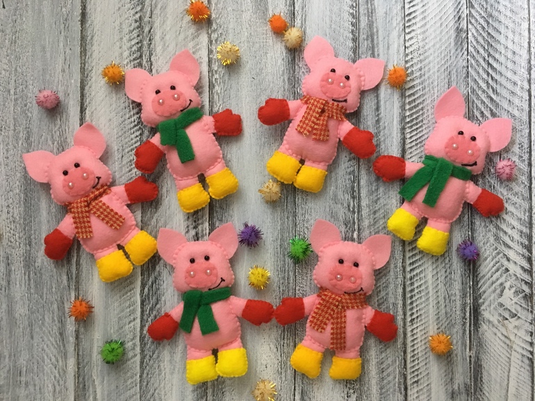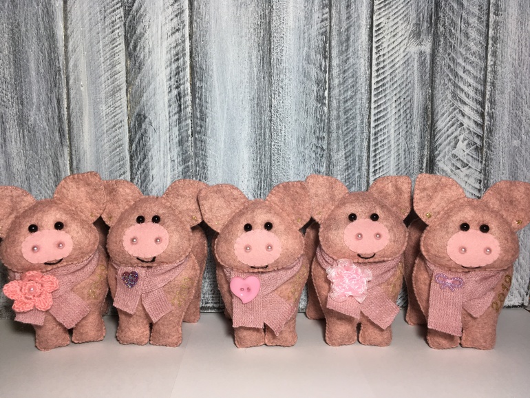 Хрюшки в наличии много цена 210р 7*8см . На веревочках . В упаковке .