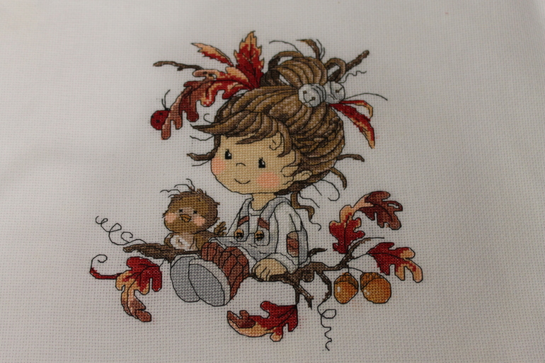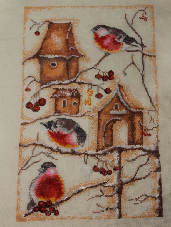 Вышитая картина. Крестик и бисер. вышито на льне равномерного переплетения