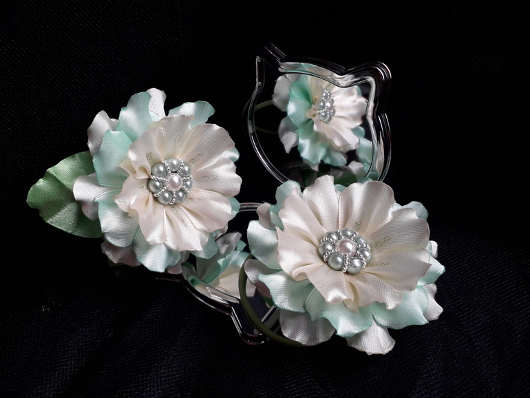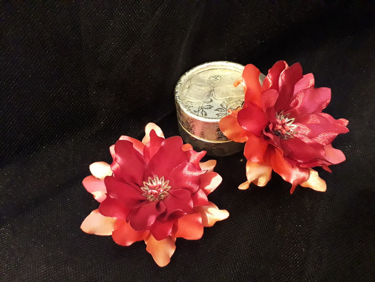 Цветы из ткани и форма. Канзаши. Украшения для волос.Всем здравствовать! Целое лето руки не прикасались к лентам. Вот вспоминаю)