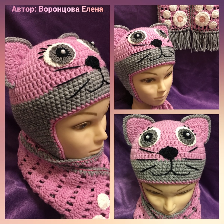 4.Комплект (шапка +шарф) «Кошечка» (флисовая подкладка).