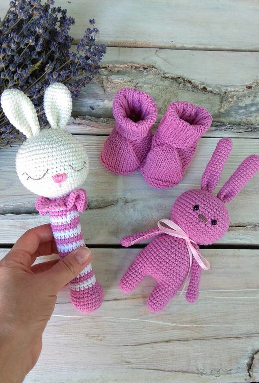 Наборы: игрушка и погремушка, в трех цветах. Каждый набор по 1100 руб.