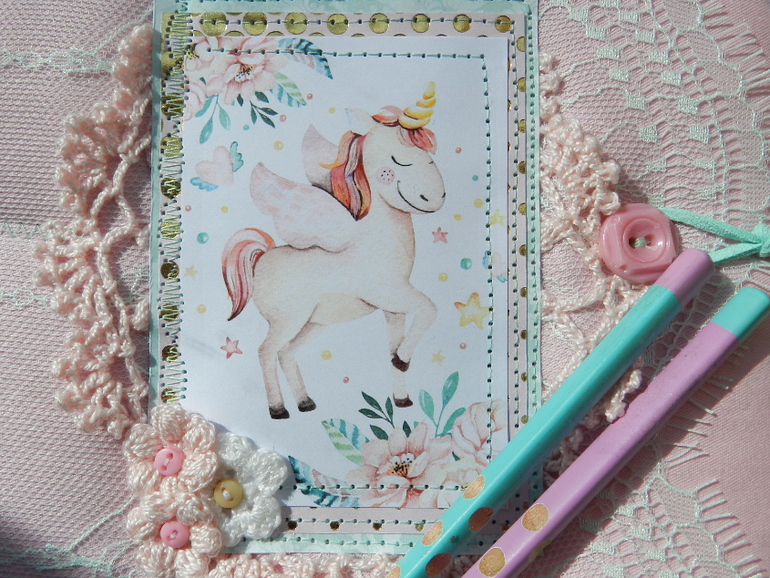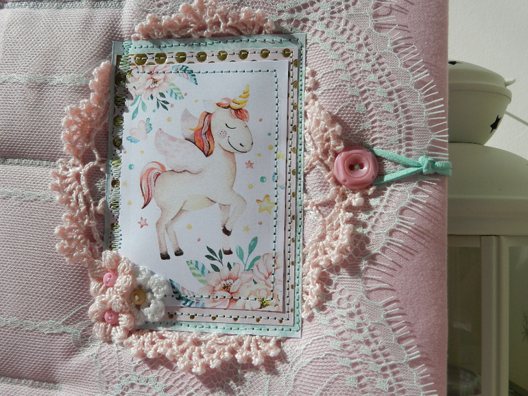 СкрапбукингДоброго дня! Хочу показать новую папочку для хранения детских документов. Мои любимые сочетания цветов: розовый+мята, кружева и единорожки, которых любят все Принцессы)