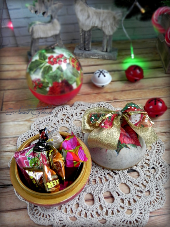 3. Шкатулка шар с сюрпризом. D 10см. Внутрь можно положить сладости, можно записки с пожеланиями...