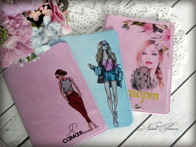 1. Мягкие обложки на паспорт из качественного переплетного кожзама пр-во Италия. Цена с цветной картинкой 450 руб, с золотой надписью - 500 руб.