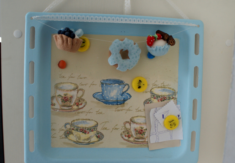 Магнитная доска из противня)). Когда я меняла текстиль и декор своей кухни на голубой у меня встал вопрос чем заменить свою грифельно-магнитную доску, которая по цвету не вписывалась. А так как вещь очень полезная для нас, то пришлось подумать. решение возникло внезапно и вот что вышло: