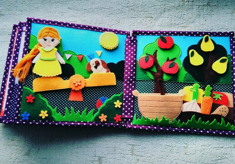 Развивающие игрушки2 недели назад, ко мне обратилась мама девочки с прекрасным именем Ксения. Маму зовут Марина, с ней я познакомилась примерно 1-1,5 года назад. Когда она заказывала первую развивающую книжечку. Дочка у нее подросла и Марина решила, что им необходим Кукольный домик в виде книжки). Прислала источник(понравилась ей книга Ольги Загородной) и попросила изготовить на подобие. Вот что получилось)
