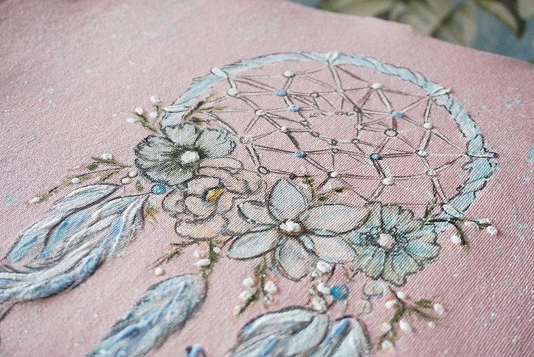Роспись с элементами замшевой краски(перья и мелкие цветочки). Рисунок НЕ смывается!