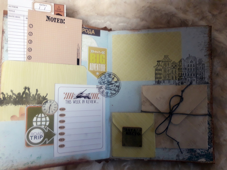 Обычный блокнот для путешествий, с кармашками для фото, с местами для записей, с конвертиками для хранения мелочей и т.д....